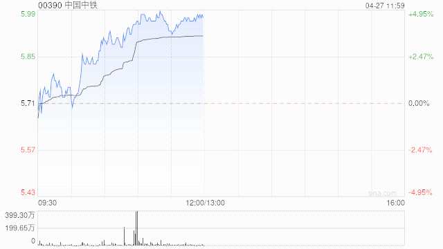 中國中鐵(00390)早盤持續(xù)走高,尾盤上漲4.38%,現(xiàn)報5.96港元,成交額1.83億港元。