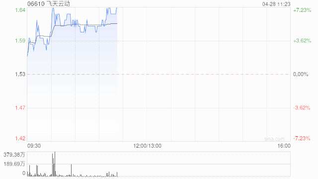 飛天云動(06610)早盤上漲5.23%,現(xiàn)報1.61港元,成交額5607.352萬港元。