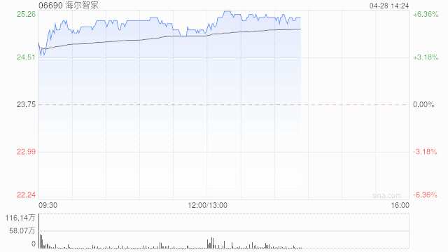 家電股午盤集體上漲 海爾智家漲近6%VESYNC漲近3%