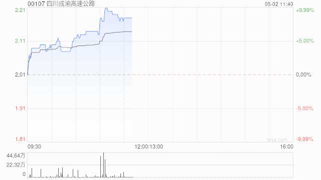 鐵路及高速概念股早盤走高,四川成渝高速公路(00107)上漲8.46%,報(bào)2.18港元;浙江滬杭甬(00576)上漲6%,報(bào)6.89港元;廣深鐵路股份(00525)上漲4.37%,報(bào)1.91港元;江蘇寧滬高速公路(00177)上漲4.53%,報(bào)8.31港元。