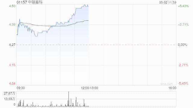 中聯(lián)重科早盤漲近5% 東方證券給予目標(biāo)價7.38元