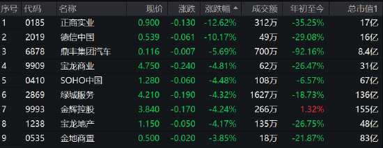 內(nèi)房股跌幅擴大,正商實業(yè)跌12.62%,德信中國跌超10%