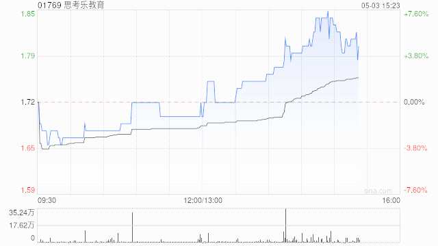 思考樂教育(01769)午盤上漲4.65%,現(xiàn)報(bào)1.80港元,成交額599.853萬港元。