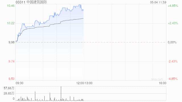 中國建筑國際(03311)早盤上漲4.21%,報(bào)10.40港元,成交額4592.927萬港元。