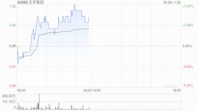 樂享集團(06988)尾盤上漲5.26%,現(xiàn)報1.00港元,成交額2013.367萬港元。