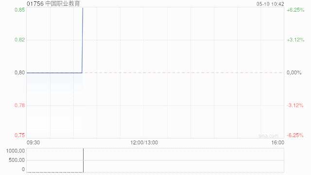 職教股逆市走高,中國(guó)職業(yè)教育(01756)上漲6.25%,報(bào)0.85港元;新高教集團(tuán)(02001)上漲3.32%,報(bào)2.80港元;中教控股(00839)上漲3.17%,報(bào)7.48港元;中國(guó)科培(01890)上漲2.70%,報(bào)2.66港元。