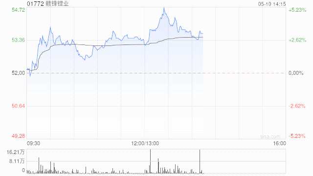贛鋒鋰業(yè)(01772)午后上漲3.37%,報(bào)53.75港元,成交額1.36億港元。