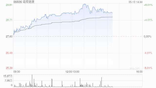 諾輝健康(06606)午盤上漲5.98%,現(xiàn)報(bào)29.25港元,成交額8044.361萬(wàn)港元。