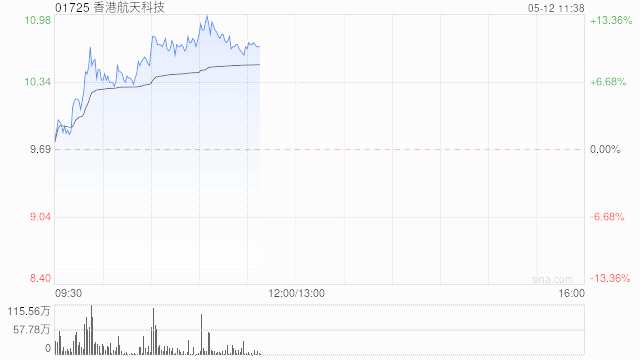 香港航天科技(01725)早盤上漲9.59%,現(xiàn)報(bào)10.62港元,成交額1.457億港元。