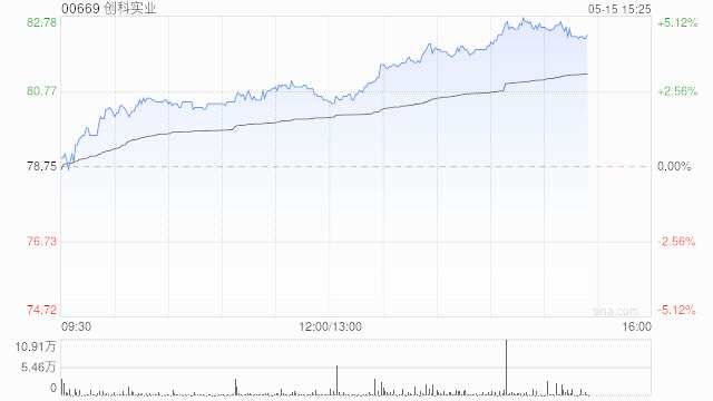創(chuàng)科實(shí)業(yè)(00669)午盤上漲4.44%,報82.25港元,成交額1.107億港元。