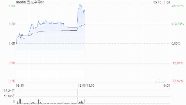 半導體概念早盤探底回升,宏光半導體(06908)上漲11.43%,報1.17港元,成交額209.899萬港元;