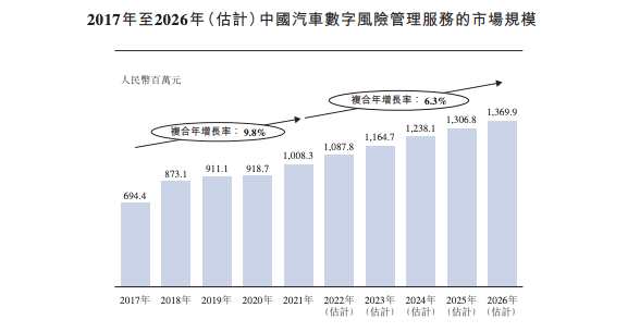據(jù)灼識(shí)咨詢的資料,截至2021年,約79%的國(guó)內(nèi)汽車經(jīng)銷商會(huì)從金融機(jī)構(gòu)獲得質(zhì)押貸款。中國(guó)汽車數(shù)字風(fēng)險(xiǎn)管理服務(wù)的市場(chǎng)規(guī)模由2017年的6.94億元增加至2021年的10.08億元,復(fù)合年增長(zhǎng)率為約9.8%。隨著有關(guān)服務(wù)的需求增加,預(yù)計(jì)市場(chǎng)規(guī)模將于2026年達(dá)到13.70億元。