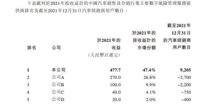 據(jù)招股書披露,以2021年收入計(jì),長(zhǎng)久數(shù)科是中國(guó)汽車流通領(lǐng)域最大的數(shù)字風(fēng)險(xiǎn)管理服務(wù)提供商。