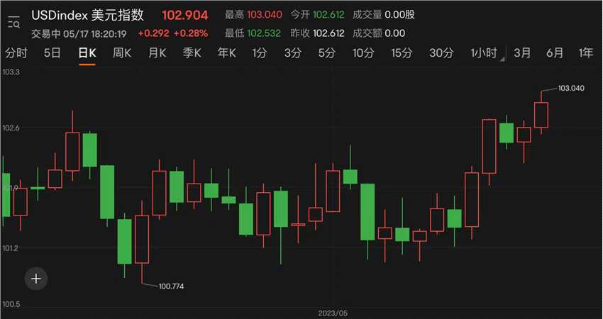 摘要: 5月17日訊(編輯馬軼杰)港股三大指數(shù)今日悉數(shù)下跌,午后跌幅加速。截至收盤,恒指跌2.09%,國(guó)企股指數(shù)及科技指數(shù)分別跌2.25%和2.23%。我們來看今日熱點(diǎn):美元持續(xù)走強(qiáng),