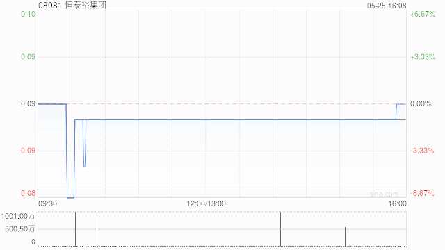 恒泰裕集團(08081)發(fā)布公告,于2023年5月25日斥資約317.64萬港元回購股份3570萬股,每股回購價格為0.088-0.089港元。