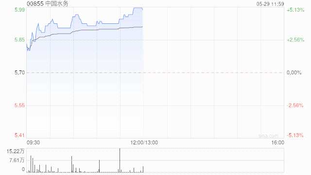 水務(wù)股早盤持續(xù)走高 中國(guó)水務(wù)漲近%北控水務(wù)集團(tuán)漲超2%