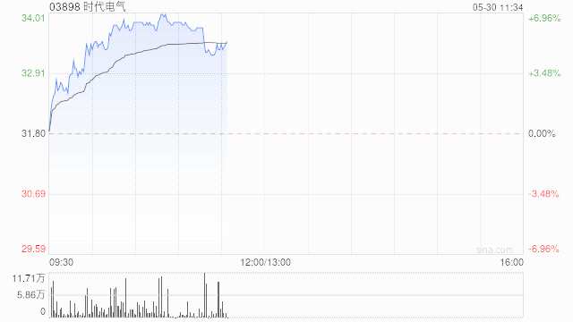 時(shí)代電氣(03898)早盤上漲6.45%,現(xiàn)報(bào)33.85港元,成交額5341.043萬港元。