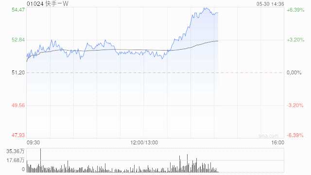 快手-W(01024)午后上漲6.35%,現(xiàn)報(bào)54.45港元,成交額7.709億港元。