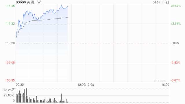 美團-W(03690)早盤上漲4.72%,現(xiàn)報115.4港元,成交額24.722億港元。