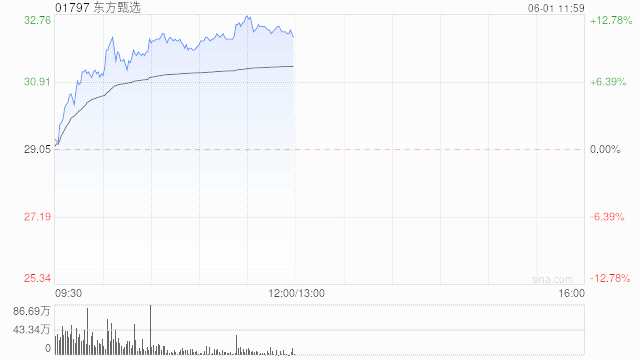 東方甄選(01797)早盤再漲超11%,本周累漲超35%?,F(xiàn)漲11.53%,報(bào)32.40港元,成交額7.150億港元。