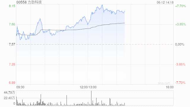 力勁科技(00558)午盤(pán)上漲6.47%,現(xiàn)報(bào)8.06港元,成交額7427.449萬(wàn)港元。