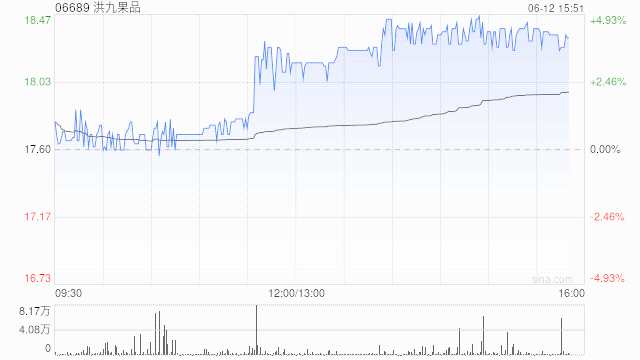 洪九果品尾盤(pán)漲近4% 瑞銀將目標(biāo)價(jià)上調(diào)至24.5港元