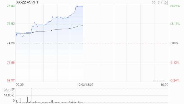 ASMPT(00522)早盤上漲4.58%,現(xiàn)報(bào)77.60港元,成交額1.095億港元,5月至今累漲超24%。