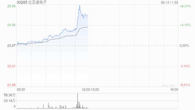 手機(jī)產(chǎn)業(yè)鏈早盤漲幅居前 比亞迪電子及高偉電子均漲逾6%