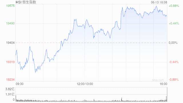 摘要: 6月13日消息,港股午后漲幅繼續(xù)擴(kuò)大,恒生科技指數(shù)一度漲至3%。截至收盤,恒指收漲0.6%,報(bào)19521.42點(diǎn),科指收漲2.37%,國(guó)企指數(shù)漲0.5%,三者均創(chuàng)反彈新高。