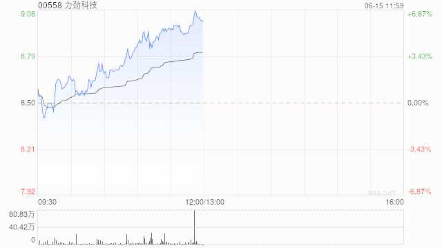 力勁科技早盤再漲超5% 股價五連陽累漲逾30%