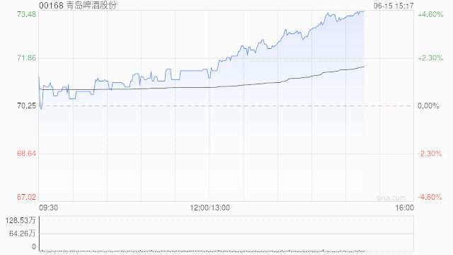 啤酒股午后拉升走高 青島啤酒漲超4%百威亞太漲超3%
