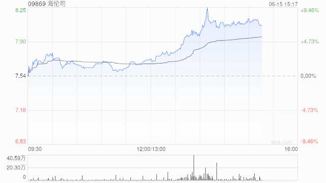 餐飲股午后拉升,海倫司(09869)上漲7.43%,報8.10港元;海底撈(06862)上漲4.99%,報18.50港元;呷哺呷哺(00520)上漲4.40%,報4.75港元;特海國際(09658)上漲3.63%,報16港元;九毛九(09922)上漲2.58%,報13.52港元。