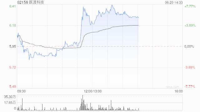 醫(yī)渡科技(02158)午后拉升上揚(yáng),上漲5.55%,現(xiàn)報(bào)6.28港元,成交額4933.442萬(wàn)港元。