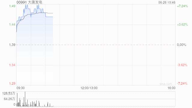 電力股早盤集體拉升,大唐發(fā)電(00991)上漲6.47%,報(bào)1.48港元;中國(guó)電力(02380)上漲6.34%,報(bào)2.85港元;華電國(guó)際(01071)上漲5.79%,報(bào)4.02港元;華潤(rùn)電力(00836)上漲6.13%,報(bào)17.32港元。
