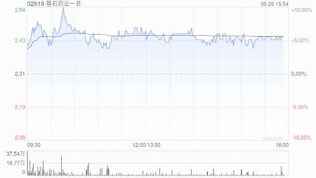 基石藥業(yè)-B(02616)午盤上漲3.90%,現(xiàn)報(bào)2.40港元,成交額1825.577萬港元。