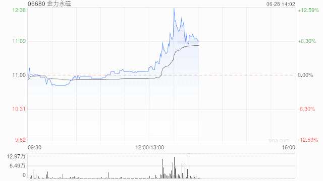 金力永磁(06680)午后拉升上揚,上漲7.27%,現(xiàn)報11.80港元,成交額1947.089萬港元。