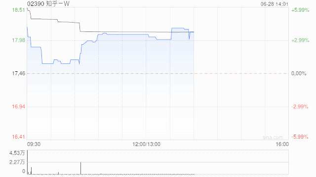 知乎-W午盤上漲3.09%,現(xiàn)報18港元,成交額218.542萬港元。