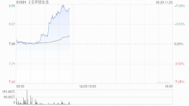 JS環(huán)球生活(01691)早盤急升上揚5.76%,現(xiàn)報8.45港元,成交額1.263億港元。