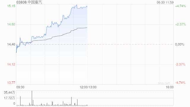 中國(guó)重汽尾盤漲超4% 月內(nèi)累漲超35%