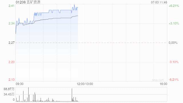 五礦資源現(xiàn)漲超5% 海通國際證券給予目標價3.41港元