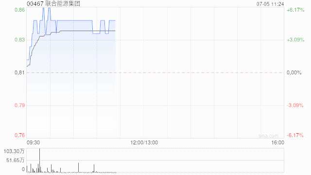 聯(lián)合能源集團(00467)早盤持續(xù)上揚,漲4.94%,現(xiàn)報0.85港元,成交額491.473萬港元。
