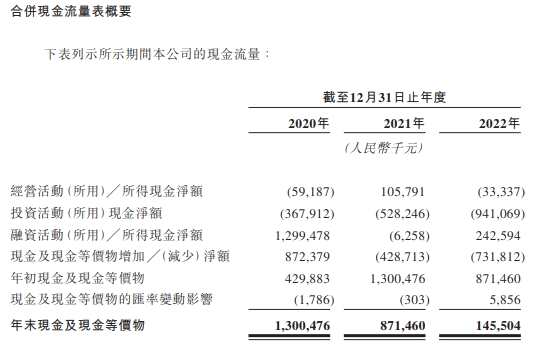2020年至2022年,連連數(shù)字經(jīng)營活動所得現(xiàn)金凈額分別為-5918.7萬元、1.06億元、-3333.7萬元,年末現(xiàn)金及現(xiàn)金等價物分別為13.00億元、8.71億元、1.46億元。