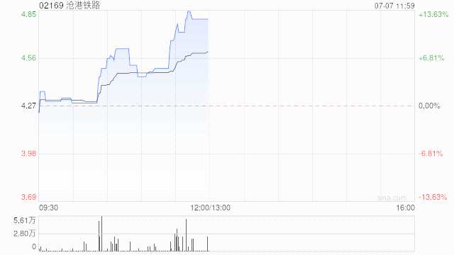 滄港鐵路早盤漲幅持續(xù)擴(kuò)大 股價現(xiàn)漲超12%