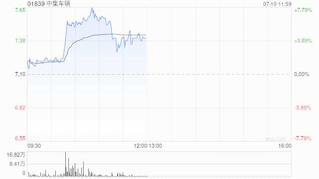 中集車輛(01839)早盤上漲3.94%,現(xiàn)報(bào)7.38港元,成交額1581.582萬港元。