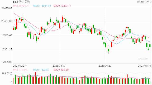 7月10日消息,美股上周五繼續(xù)下滑,美國六月份非農(nóng)業(yè)新增職位增長放緩,但工資增長依然強(qiáng)勁,市場憂慮加息前景,三大指數(shù)均錄得跌幅收市。美元反覆偏軟,美國十年期債息上升至4.06厘水平,金價及油價表現(xiàn)向上。港股早盤大幅高開,隨后沖高回落,恒指盤中一度漲超2%,截至午間收盤,恒指漲0.78%,報18509.38點,恒生科技指數(shù)漲1.25%,國企指數(shù)漲0.7%。盤面上,權(quán)重科技股普漲,阿里巴巴漲超3%,快手、京東、美團(tuán)漲超2%,騰訊漲超1%,暑期檔總票房破70億元,電影概念股集體強(qiáng)勢;房企將迎來債券到期高峰,內(nèi)房股沖高回落,佳兆業(yè)集團(tuán)跌超12%,帶領(lǐng)建材水泥股走低,汽車股多數(shù)下跌,零跑汽車、小鵬汽車均跌超2%。
