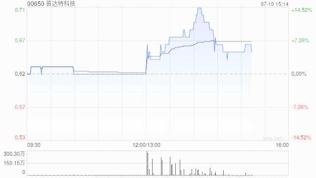 普達(dá)特科技現(xiàn)漲近5% 2022年全年營收5.68億港元同比增加310%