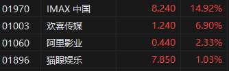 港股市場電影概念股持續(xù)活躍,其中,IMAX中國漲近15%,歡喜傳媒漲近7%,阿里影業(yè)漲超2%,貓眼娛樂漲1%。消息面上,據貓眼專業(yè)版數據,7月10日11時16分,2023年暑期檔總票房(含預售)突破70億元,《消失的她》《八角籠中》《變形金剛:超能勇士崛起》分列暑期檔票房前三。