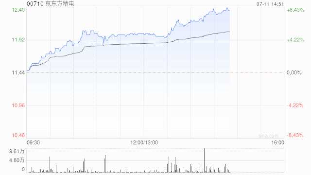 京東方精電午盤持續(xù)走高 股價(jià)現(xiàn)漲近8%