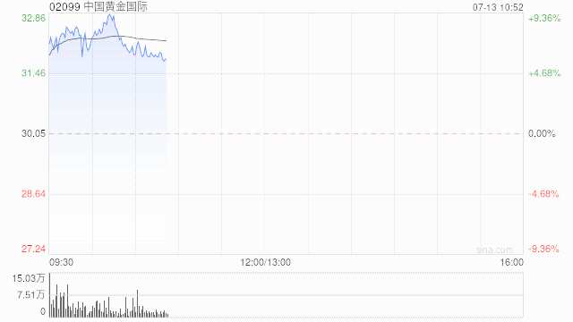 黃金股早盤(pán)漲幅居前 中國(guó)黃金國(guó)際漲超9%招金礦業(yè)漲逾8%
