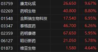 醫(yī)藥外包概念走強,康龍化成(300759)漲超9%,藥明生物漲超8%,泰格醫(yī)藥(300347)、維亞生物等跟漲。消息面上,醫(yī)藥股受益于6月份美國CPI和核心CPI均低于預期,并且CPI同比增速創(chuàng)下自2021年3月以來的最低漲幅。市場認為這是加息預期放緩的表現(xiàn)。此外,醫(yī)藥行業(yè)對利率調整非常敏感。